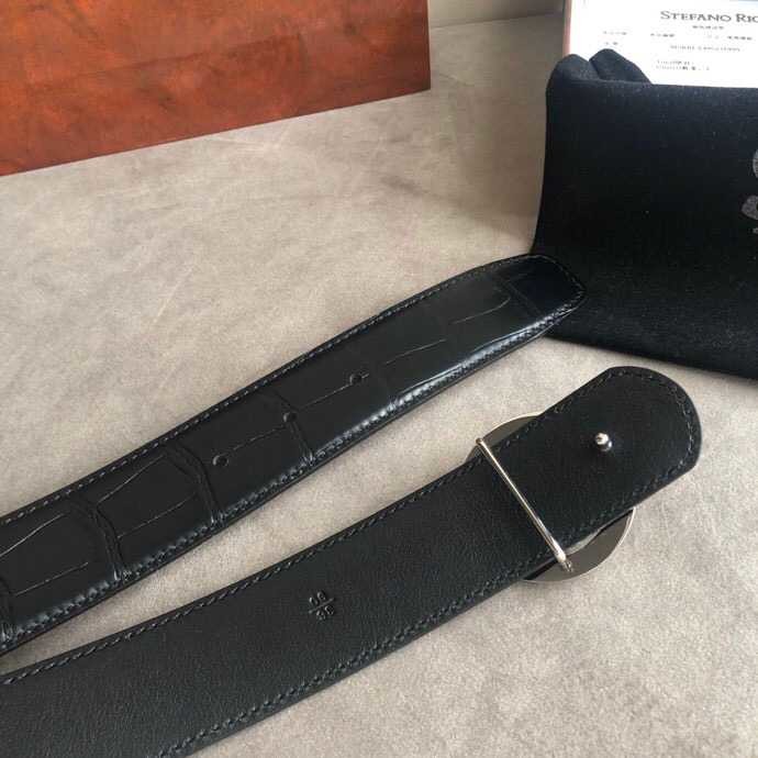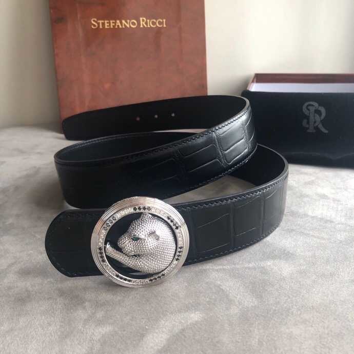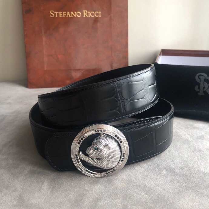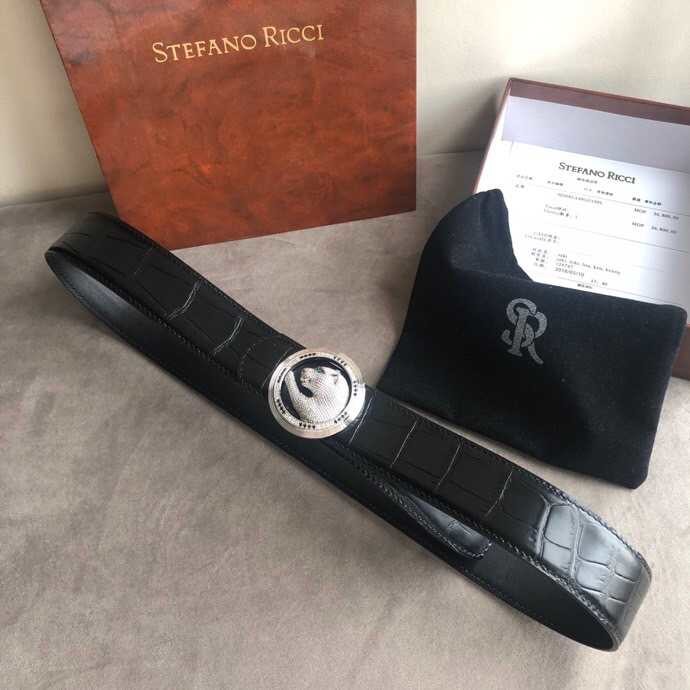 Stefano Ricci Classic stainless steel eagle buckle leather embossed crocodile pattern 3.8cm belt