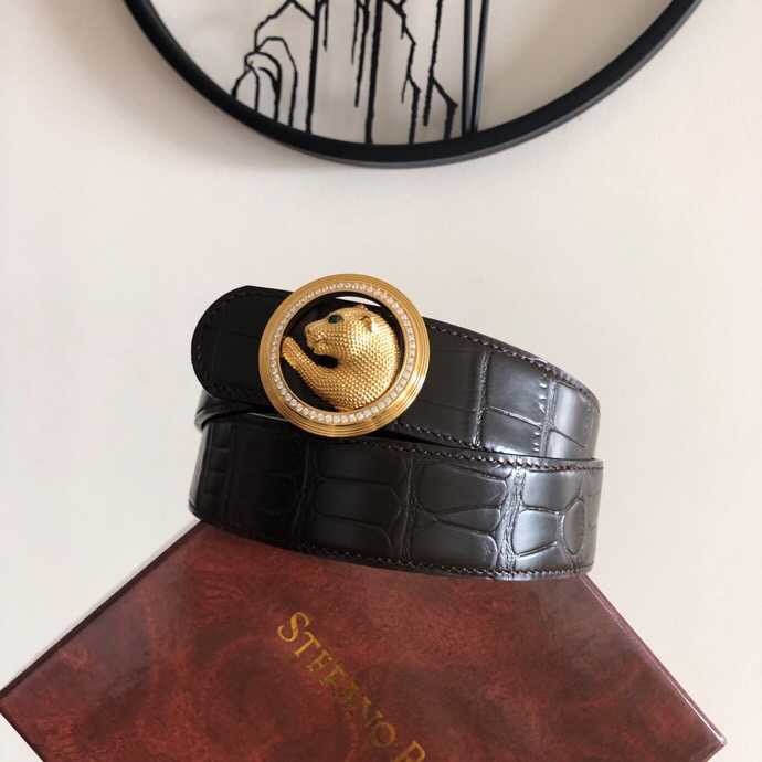 Stefano Ricci Stainless steel leopard head metal buckle 3.8cm cowhide belt
