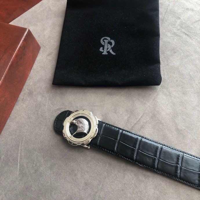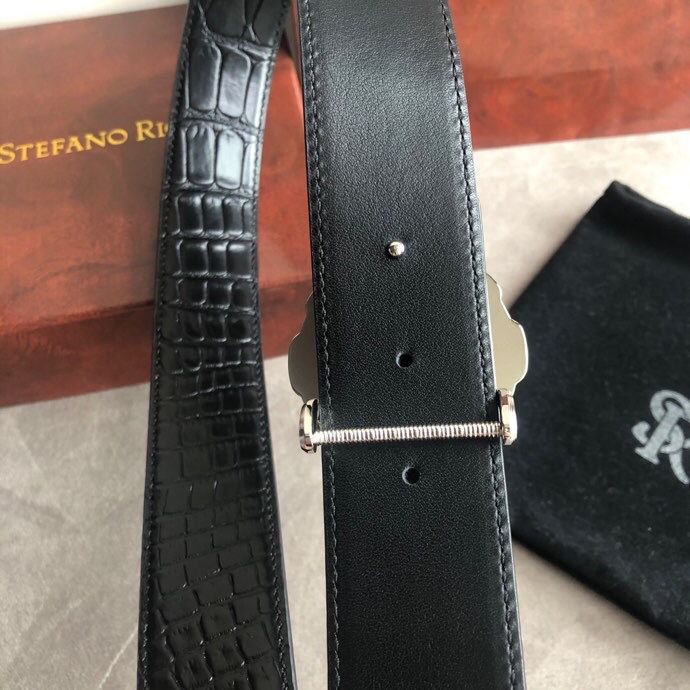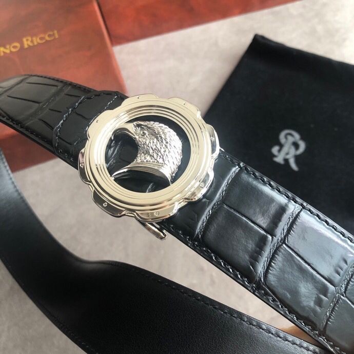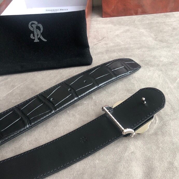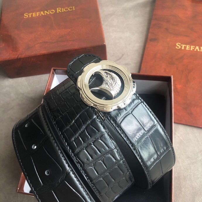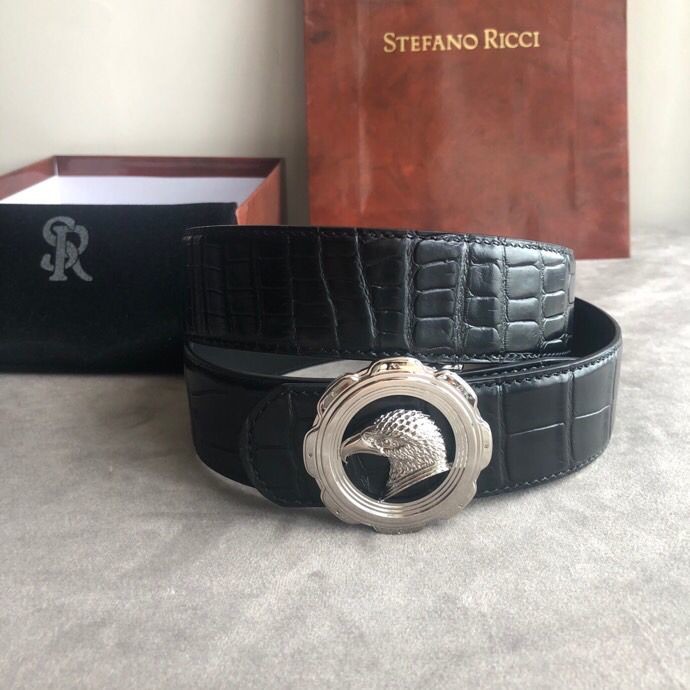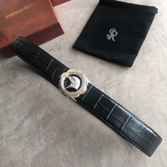 Stefano Ricci Classic stainless steel eagle buckle leather embossed crocodile pattern 3.8cm belt