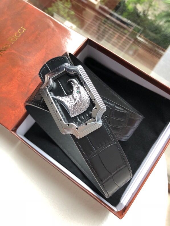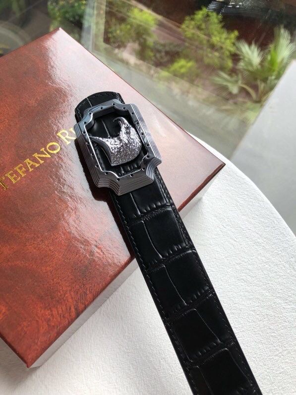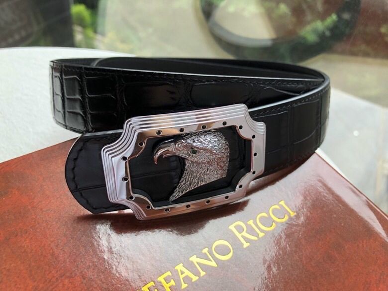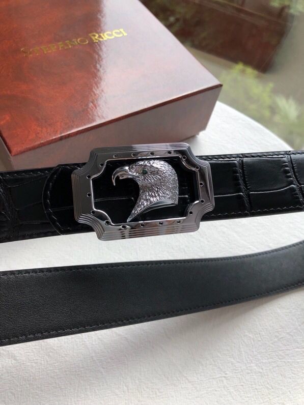 Stefano Ricci Classic stainless steel eagle buckle leather embossed crocodile pattern 3.8cm belt