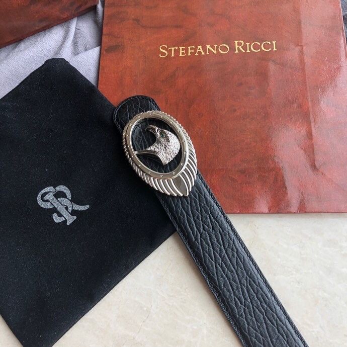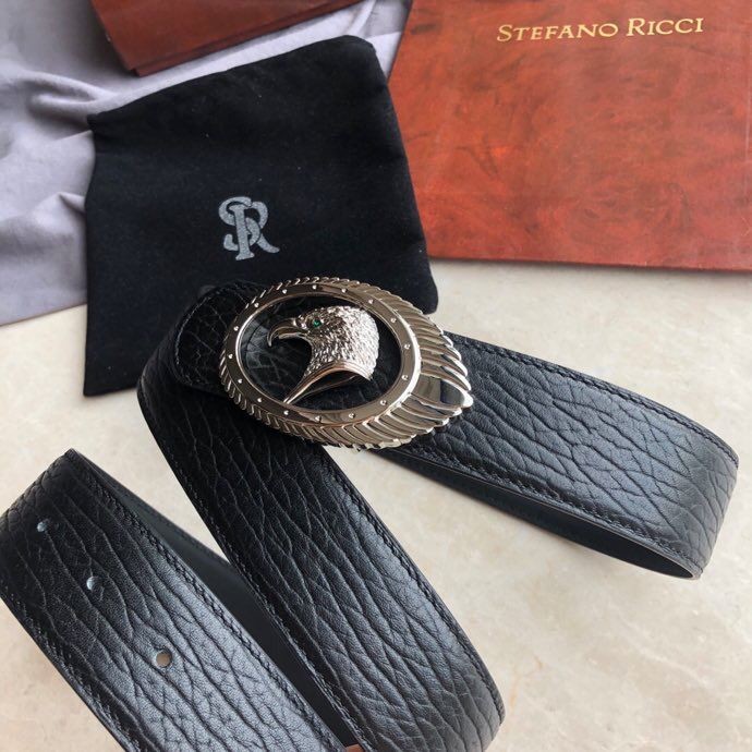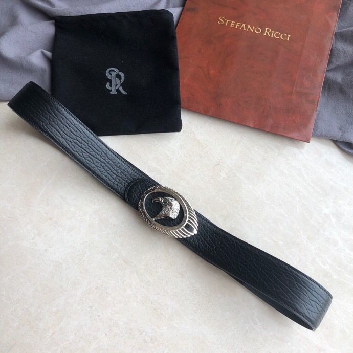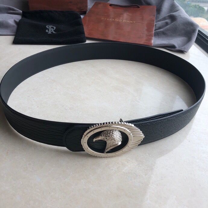 Stefano Ricci Stainless steel eagle head feather metal buckle 3.8cm cowhide belt