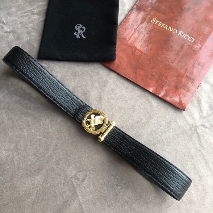 Stefano Ricci Stainless steel eagle head metal buckle 3.8cm cowhide belt