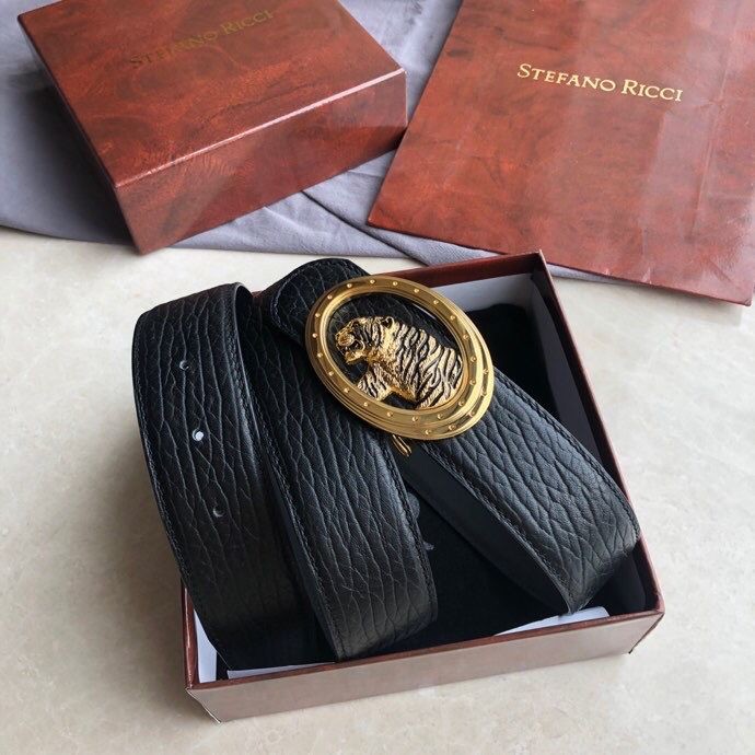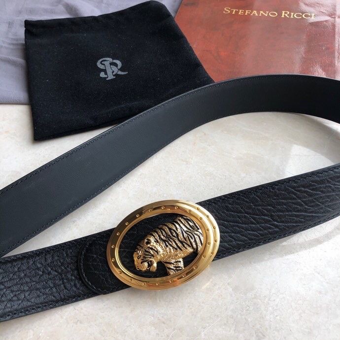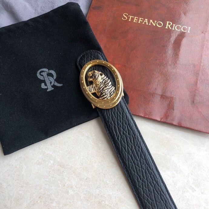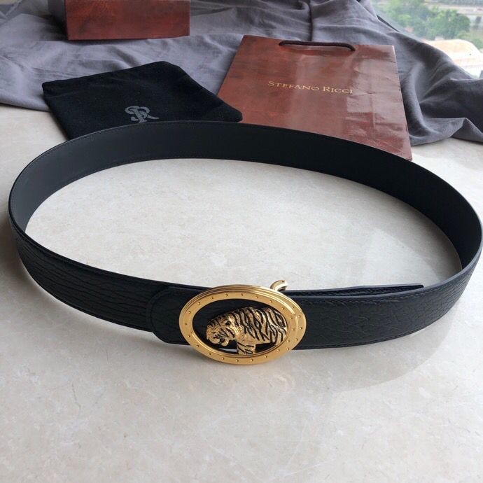 Stefano Ricci Stainless steel tiger metal buckle leather 3.8cm belt