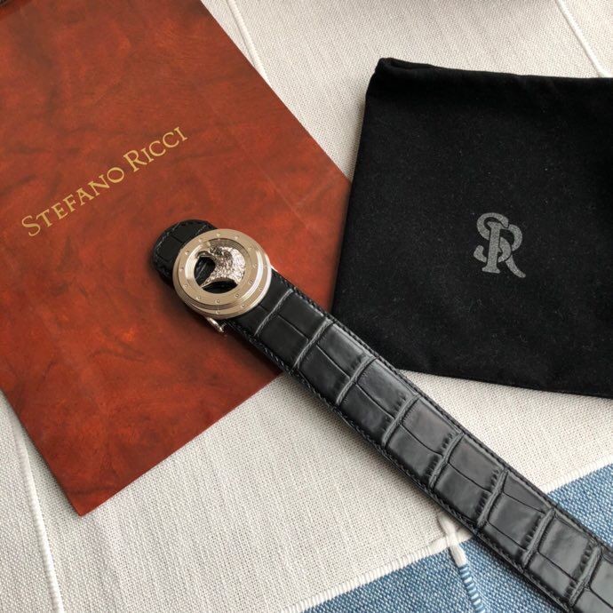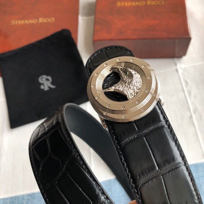 Stefano Ricci 3.8cm men s eagle leather crocodile pattern belt