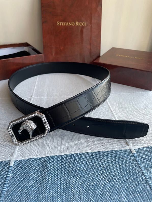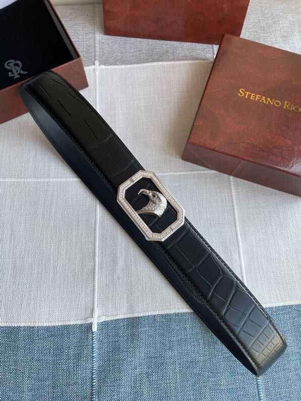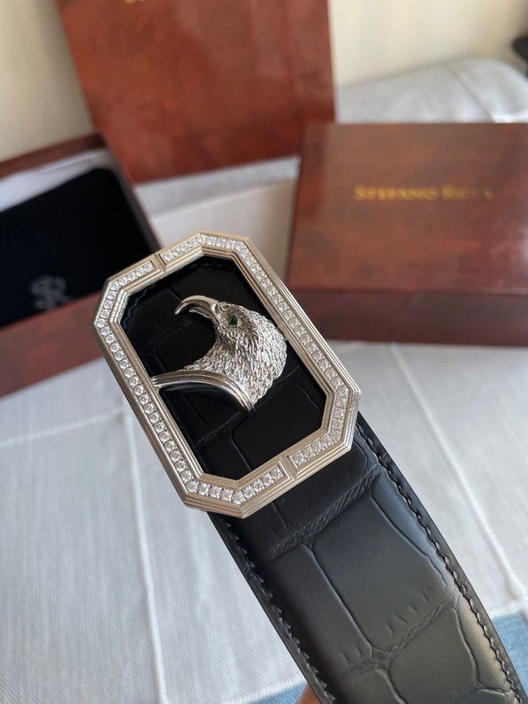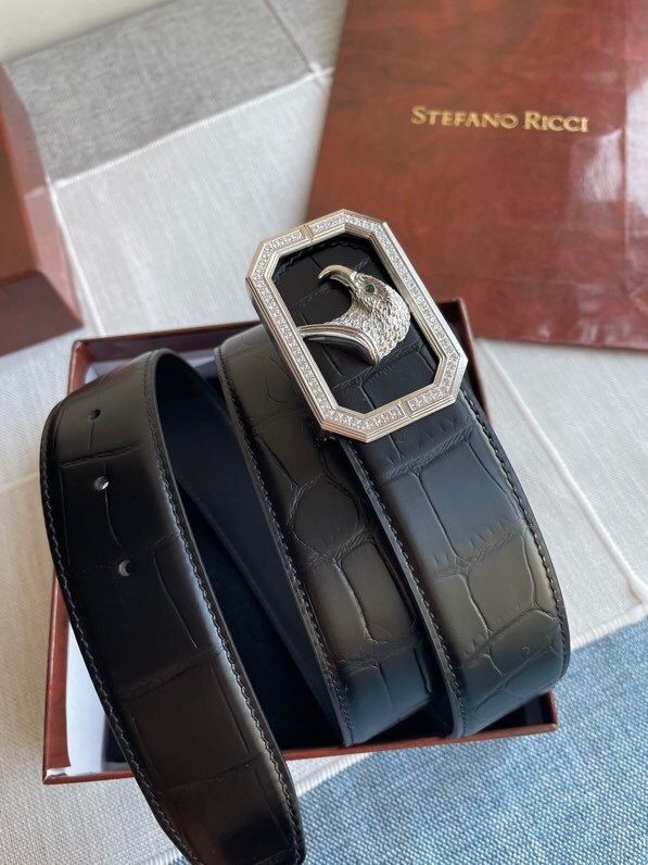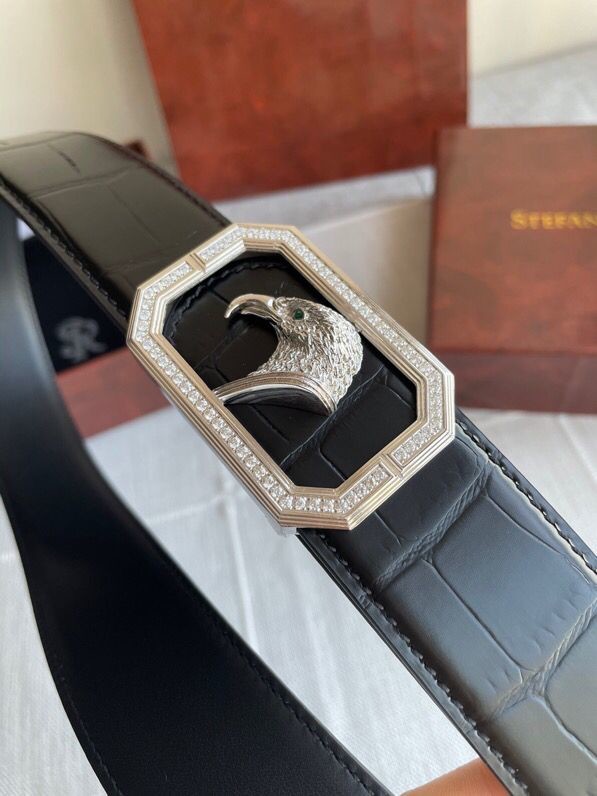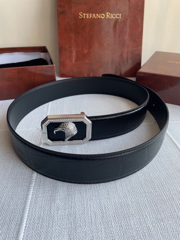 Stefano Ricci Stainless steel eagle head metal buckle 3.8cm cowhide belt