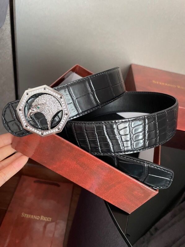 Stefano Ricci Stainless steel eagle head buckle 3.8cm cowhide belt