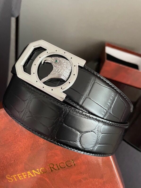 Stefano Ricci Stainless steel eagle head metal diamond buckle 3.8cm cowhide belt