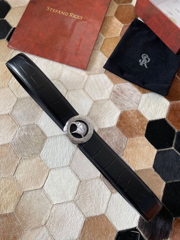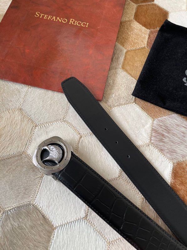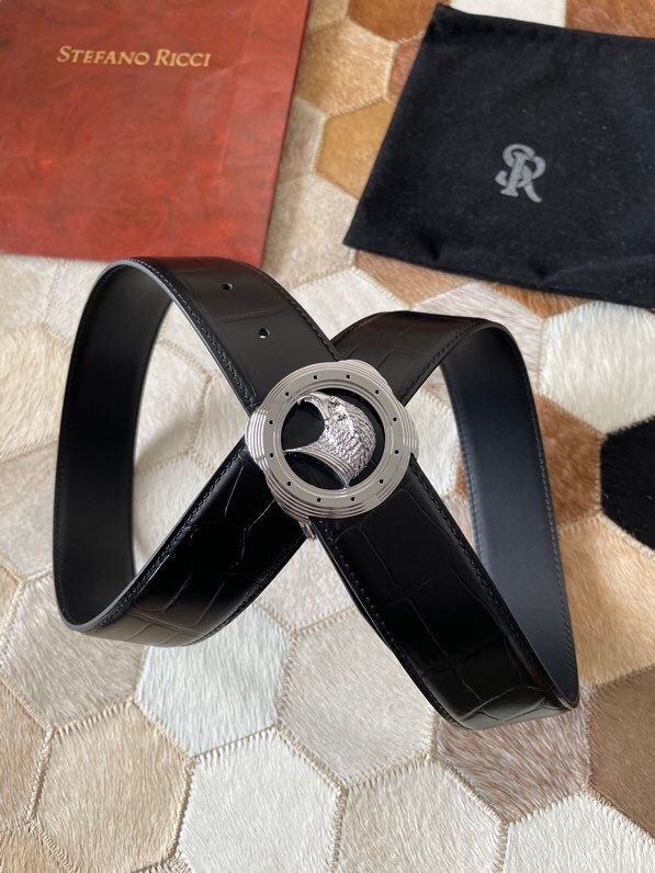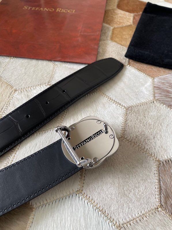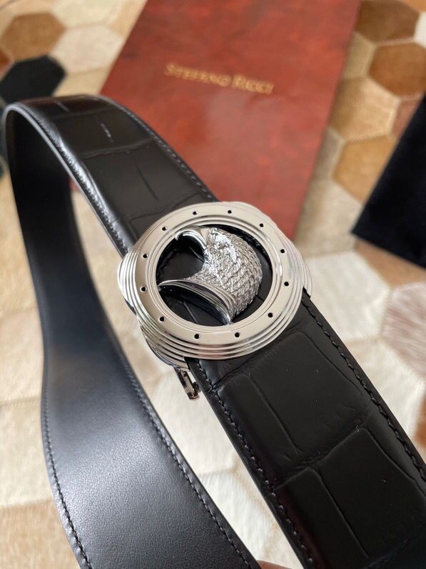 Stefano Ricci Classic stainless steel eagle logo metal buckle crocodile pattern 3.8cm wide belt