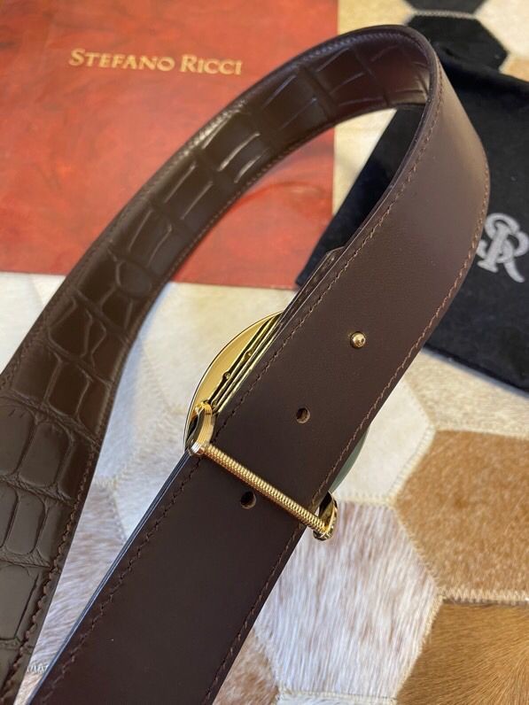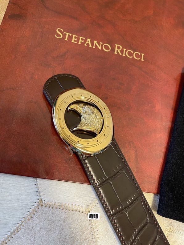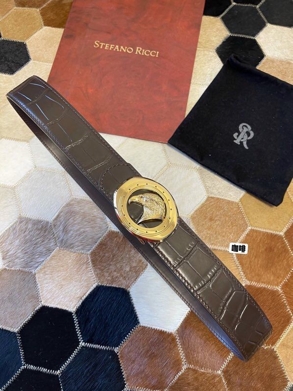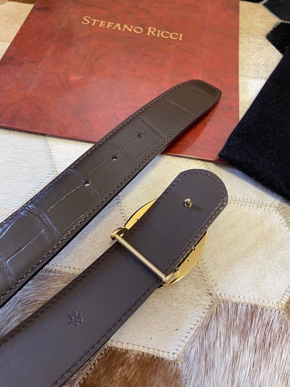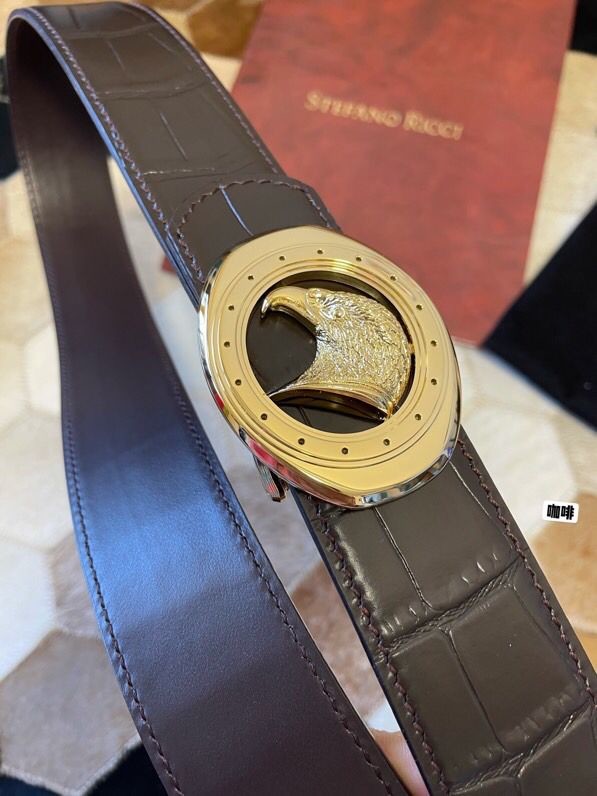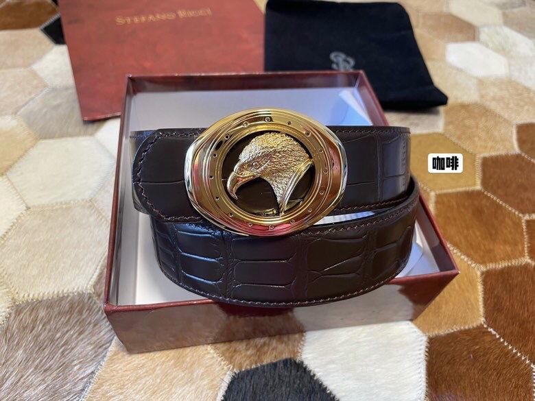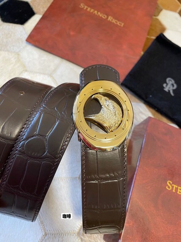 Stefano Ricci Classic stainless steel eagle buckle leather embossed crocodile pattern 3.8cm belt