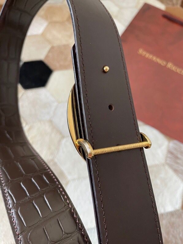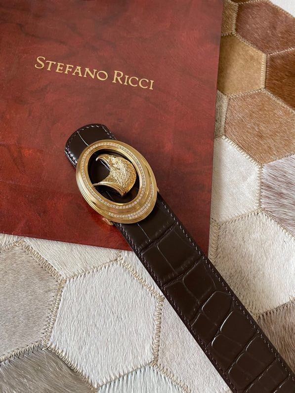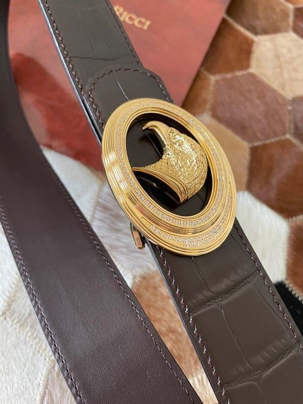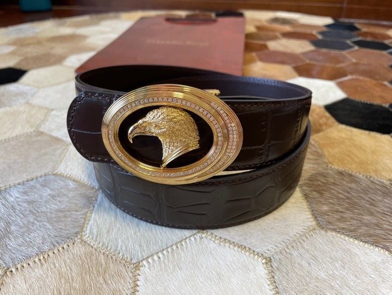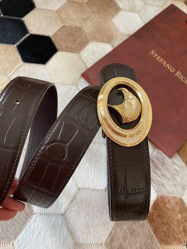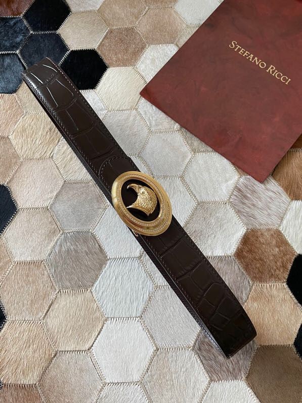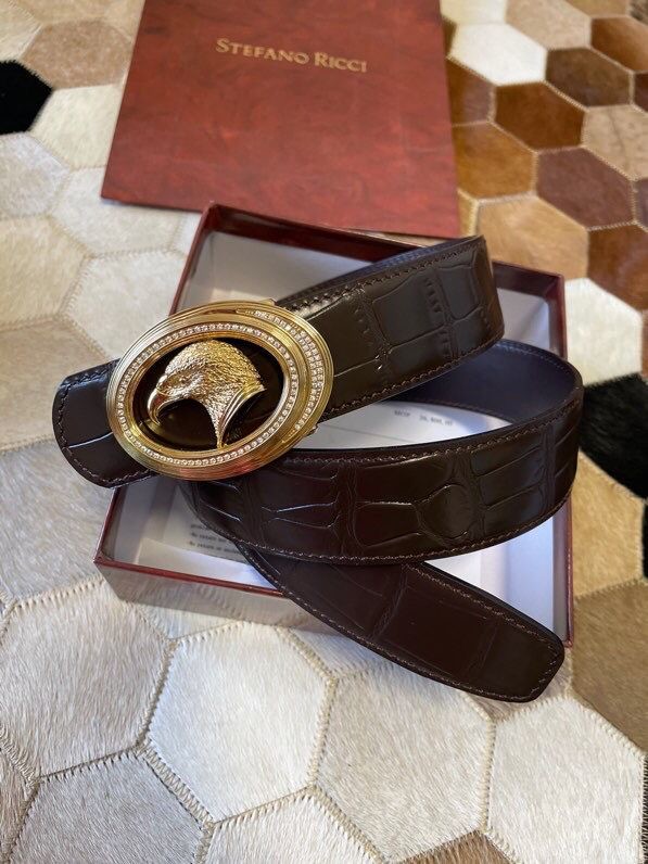 Stefano Ricci Classic stainless steel eagle buckle leather embossed crocodile pattern 3.8cm belt