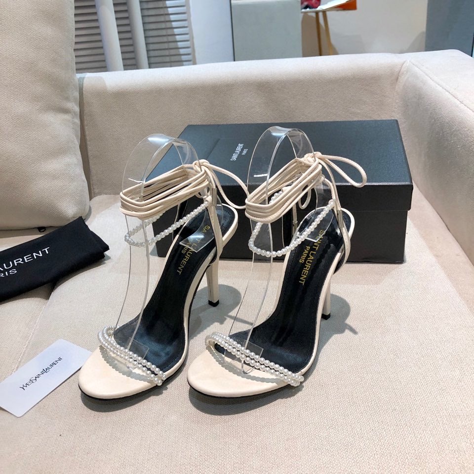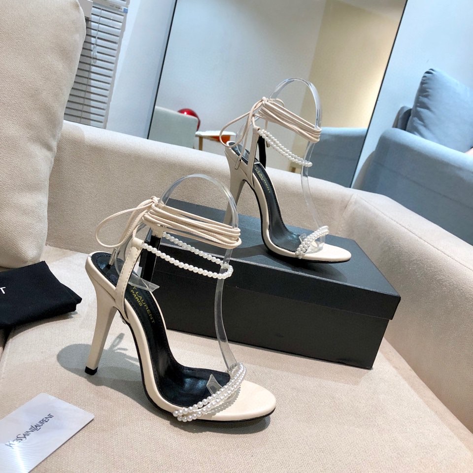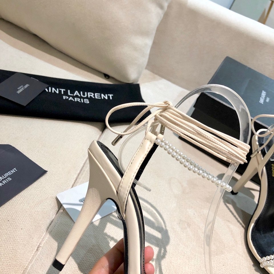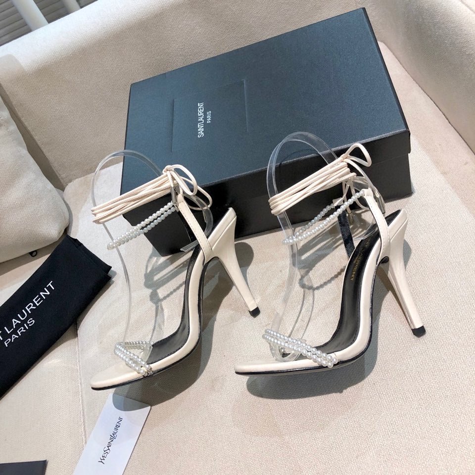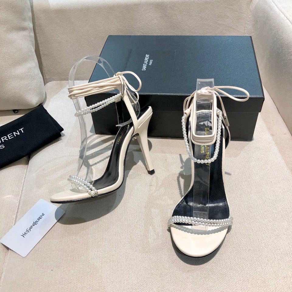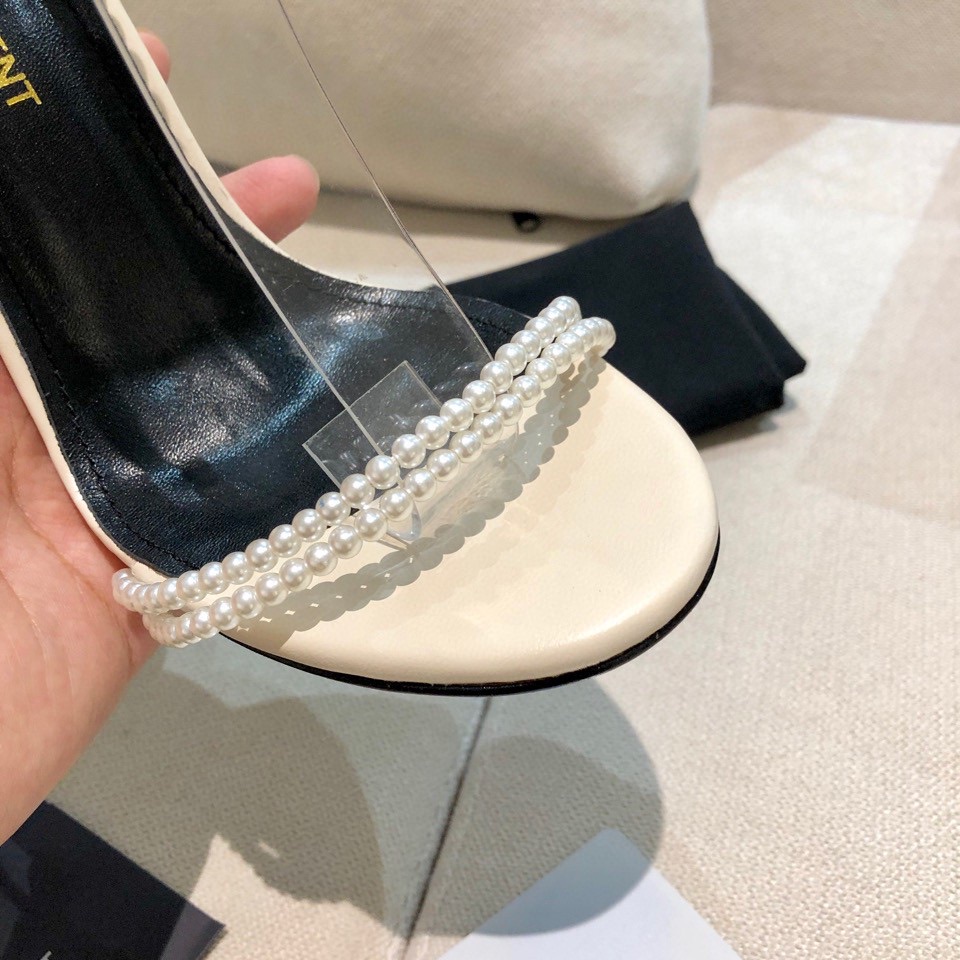 Pearls on vamp and ankle Sheepskin footbed Italian leather outsole