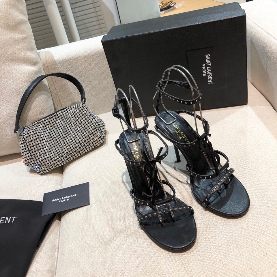 Yves Saint Laurent diamond buckle high heel sandals